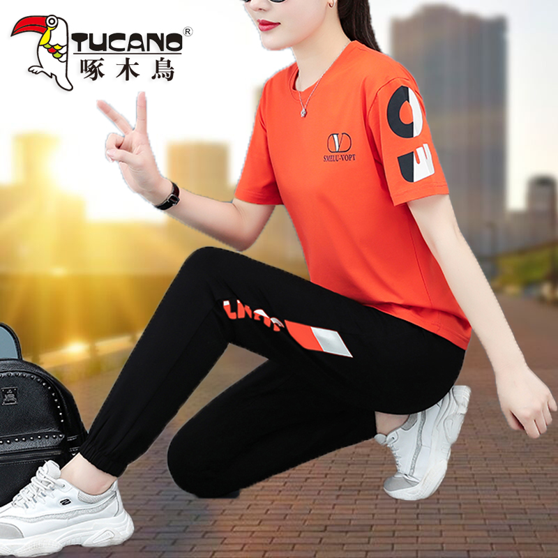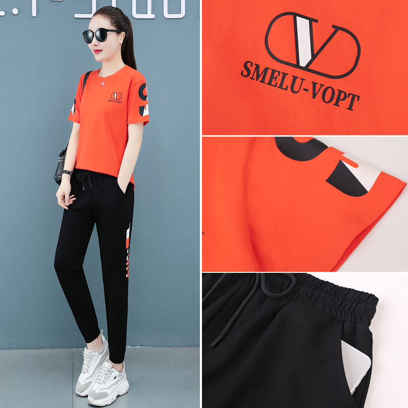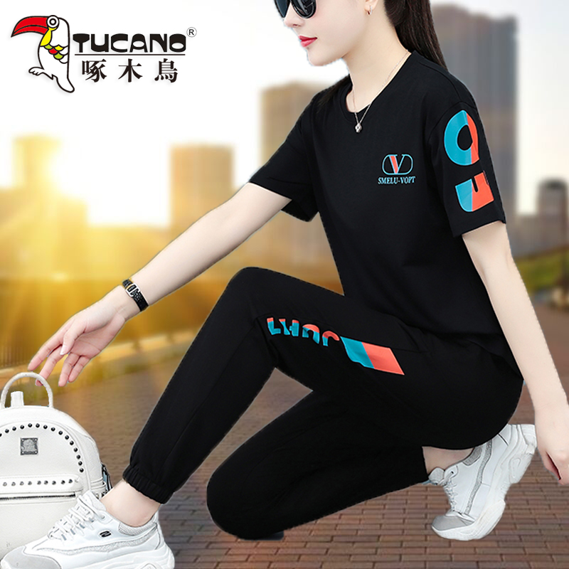 Peck Wood Pure Cotton Sports Suit Women Summer 2022 New Short Sleeves Fashion Loose Casual Thin pieces Two sets