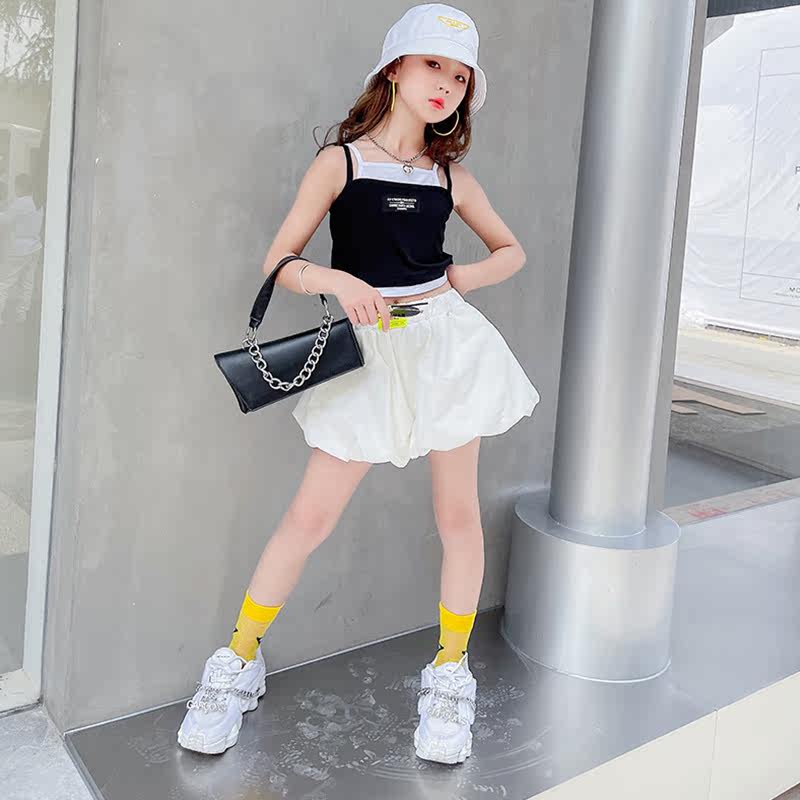 Black tops White shorts(positive recommendation) Rose tops White shorts(positive recommendation) Fluorescent green tops Black shorts(positive recommendation)