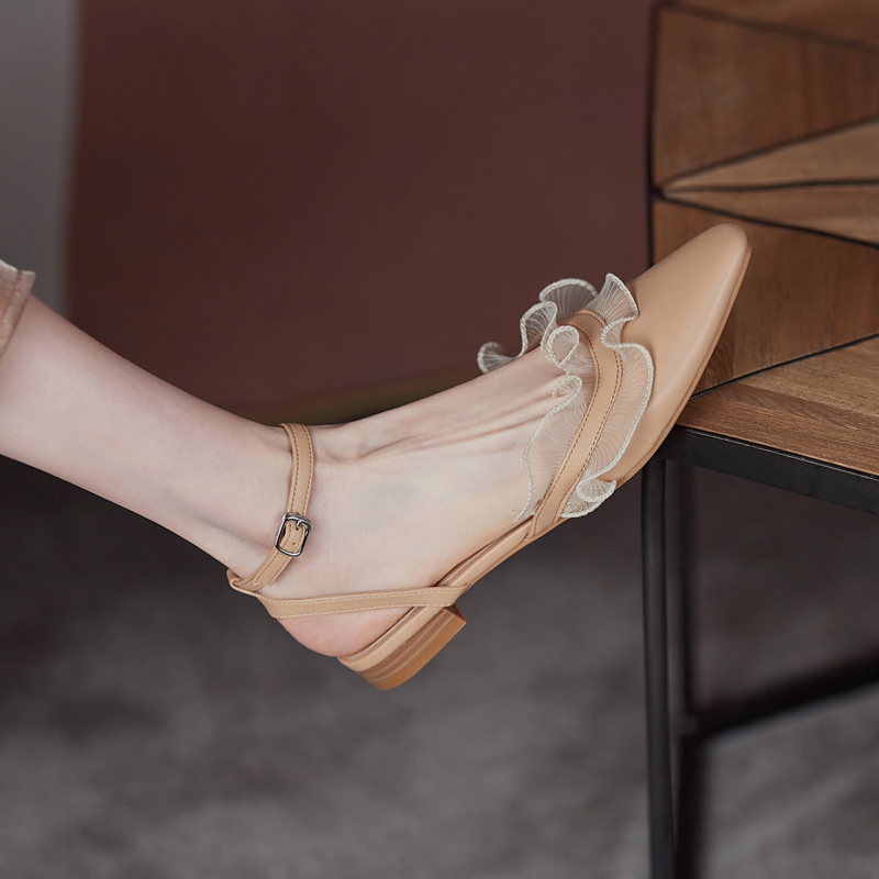 Baotou back empty sandals female retro 2022 new summer fairy style low-heeled all-match shallow mouth strap flat shoes