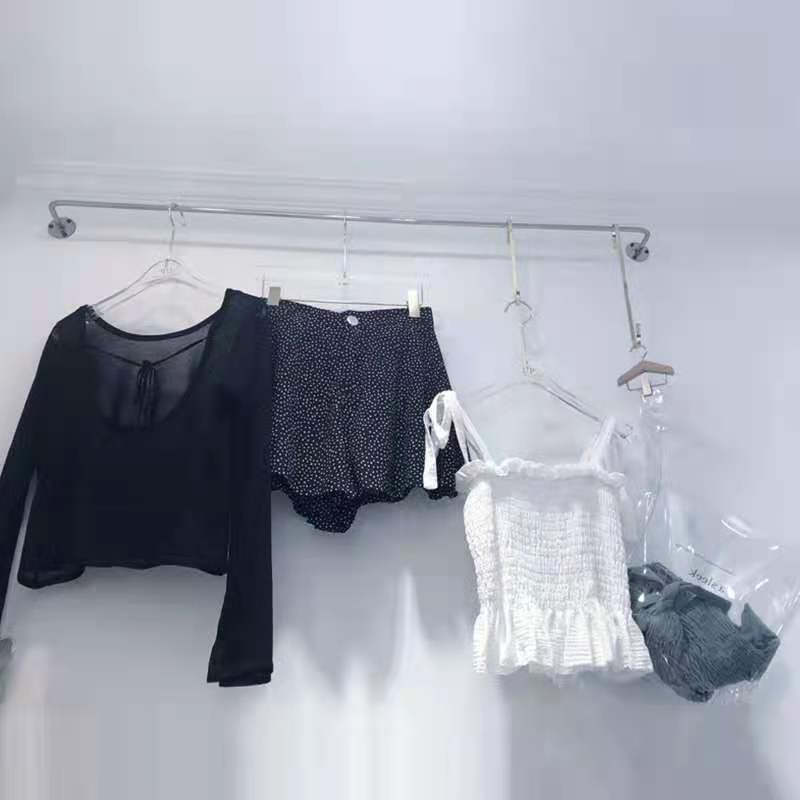 Clothing store display stand standard clothes rack men's and women's shop wall solid front hanging children's clothing store stainless steel silver