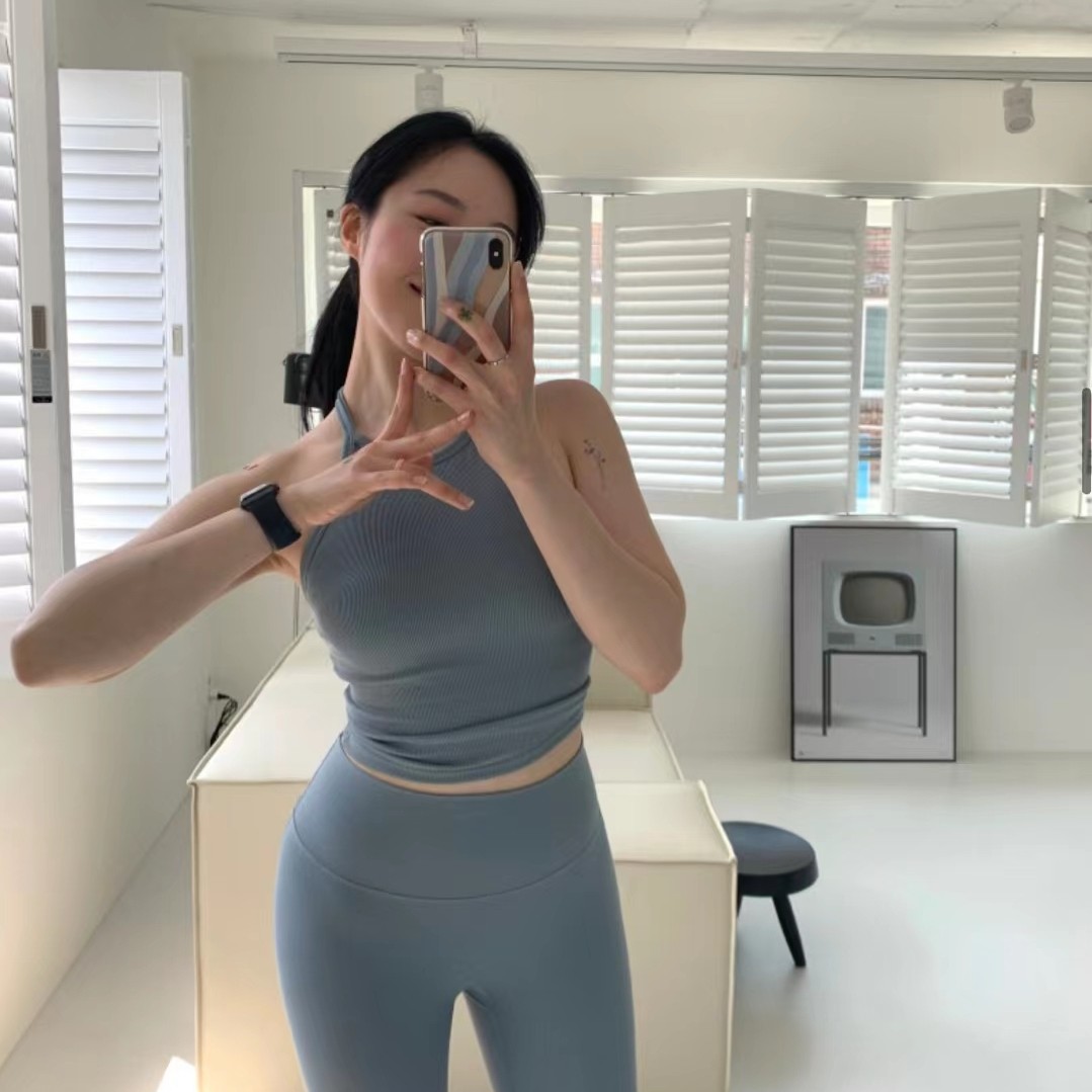 South Korean routine good-looking yoga suit thread vest woman gym gym sports blouses with chest cushion