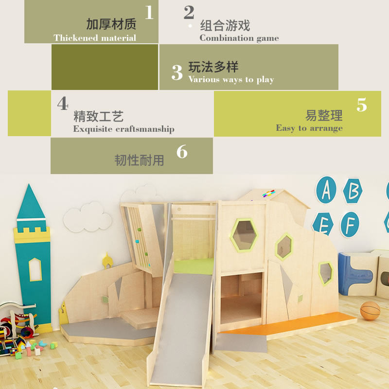 Early Education Center Wooden Slide Sensation Training Children's Corner Loft Game House Kindergarten Climbing Drilling Combination