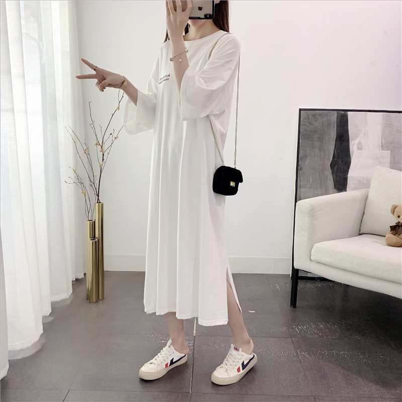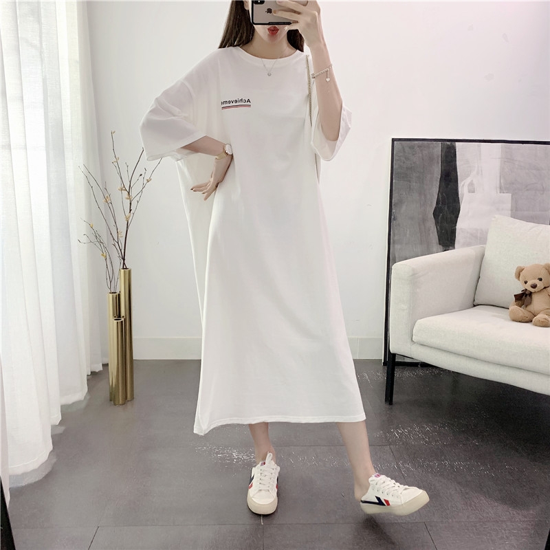 Sleeping Skirt Woman Summer Pure Cotton Short Sleeve Korean version of the long version of the new pyjamas summer 2021 The new pyjamas home clothes