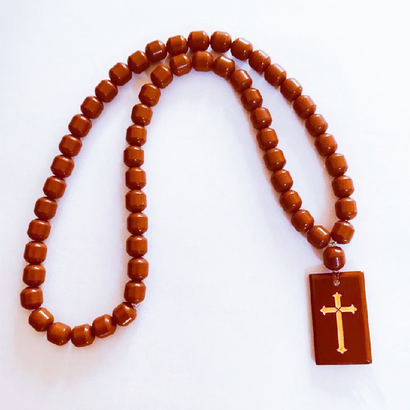 Coffee-colored octagonal bead stamping cross necklace coffee colored Earth round cross necklace