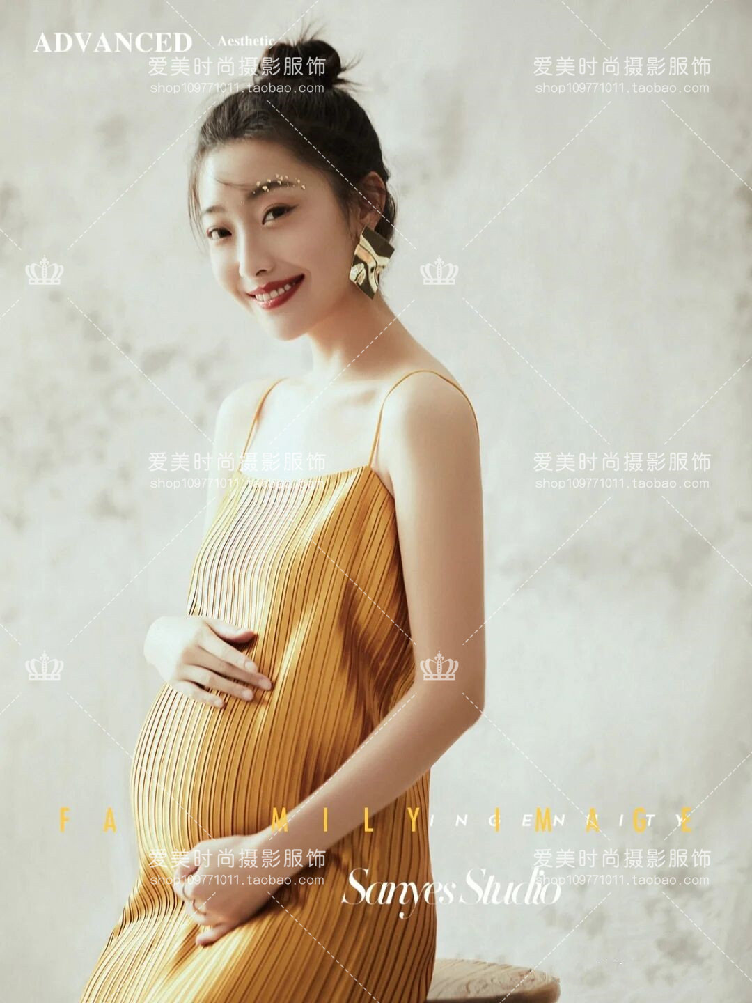 21 New pregnant women photograph the dress photograph of the new yellow small fresh sling dress photography camera fashion