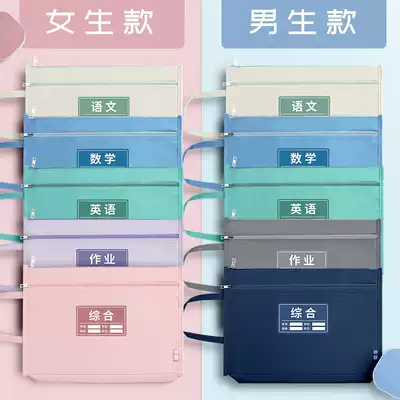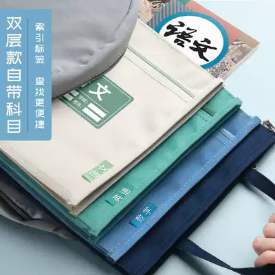 Subject classification bag subject classification homework file bag book bag junior high school Chinese mathematics sub-subject set book test paper storage primary school student textbook double-three-dimensional portable canvas information bag zipper