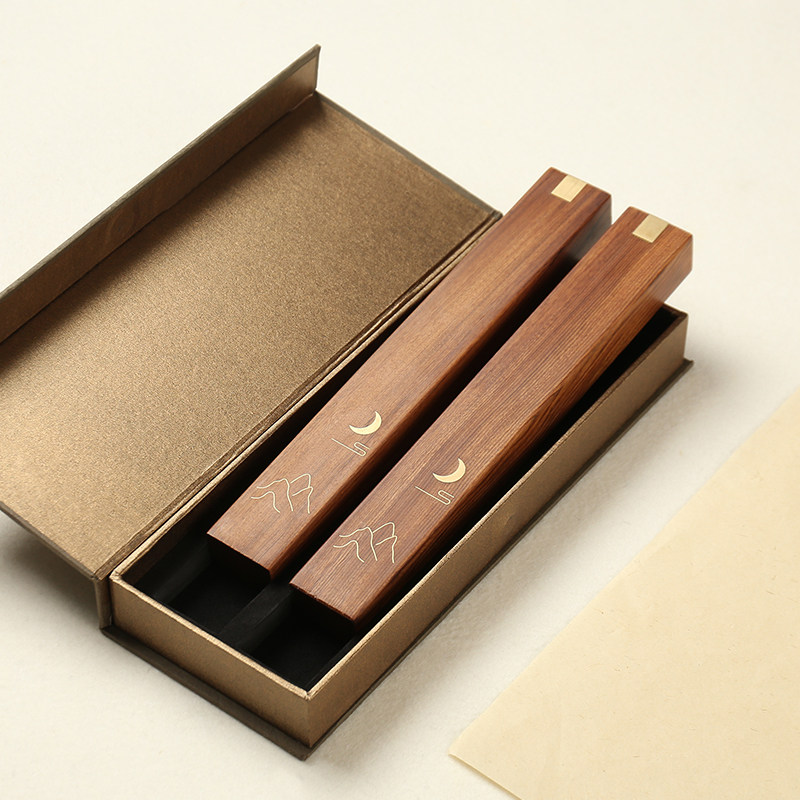 Creative calligraphy town ruler, solid wood pressed paper, cute student book town, four treasures of the study, calligraphy inlaid with copper, carved with elongated sandalwood, sour branch wood, crescent moon ruler paperweight, Chinese wind pressure book decoration