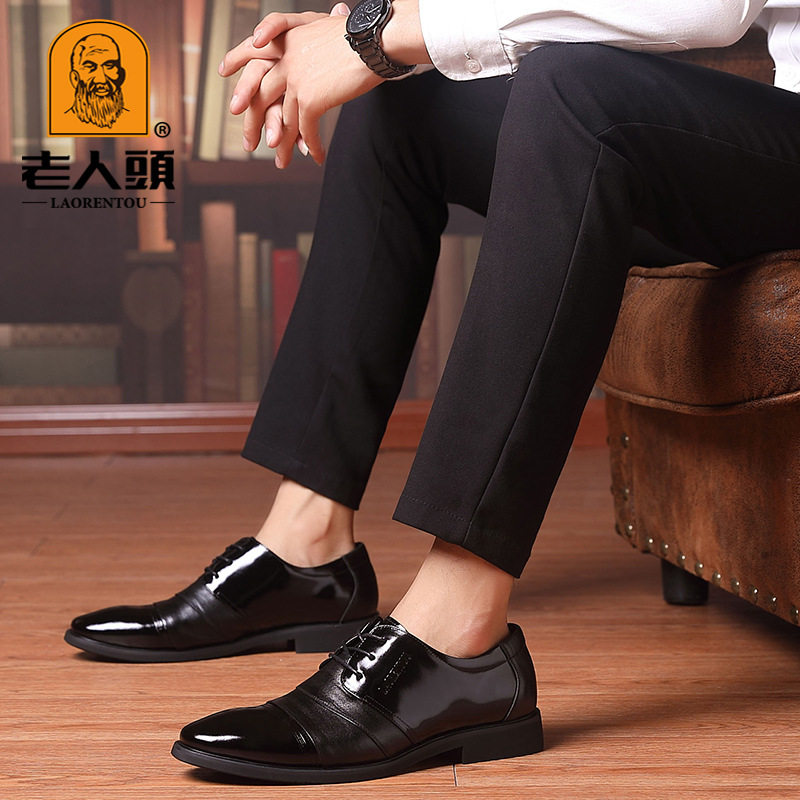 Old man's head cow leather leather shoes men's autumn business genuine leather suit with men's shoes lacing casual bag shoes groom to get married