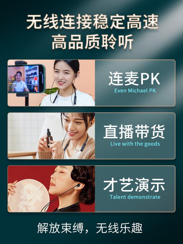 Senran WH10 wireless live monitoring headset Mobile phone Bluetooth noise reduction headset Sound card special earbuds Stage outdoor with goods ear back artifact In-ear singing game equipment set official
