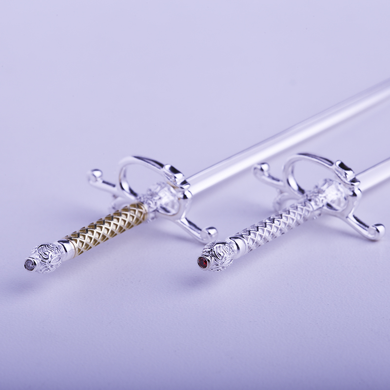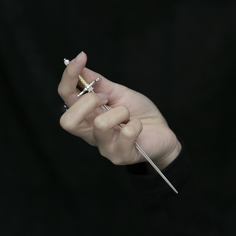 "Sewing Needles" Pure Silver 18K Gold Pei Sword Pendulum Power Play Elia Sends Daughter Sister Presents