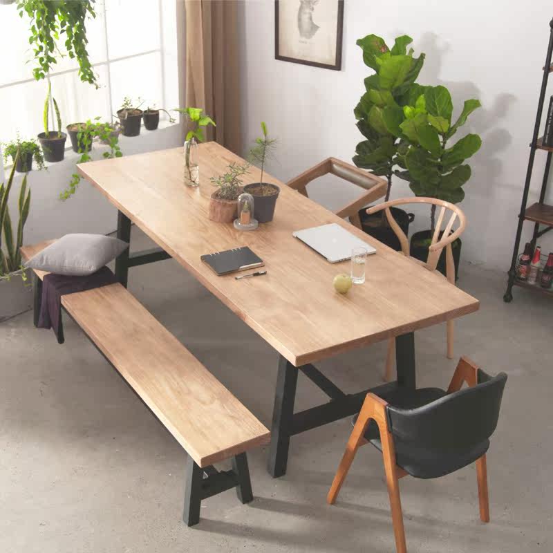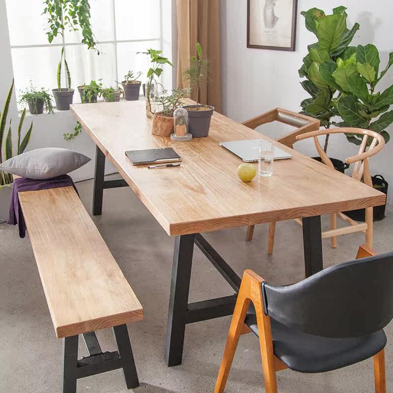 American retro wrought iron solid wood coffee stop tea restaurant table and chairs desk bar table workbench rectangular dining table