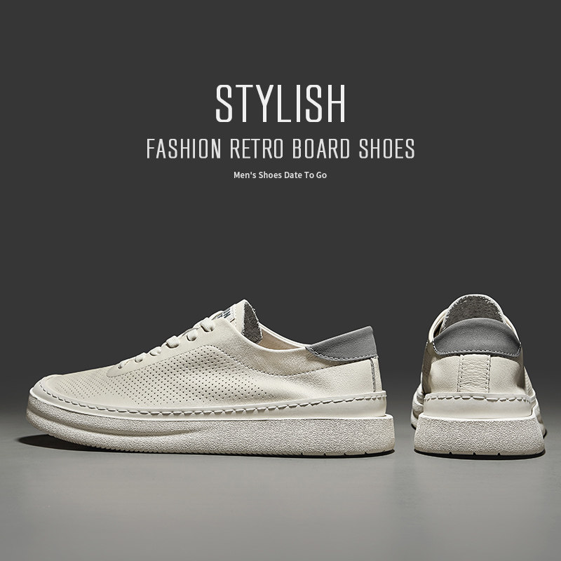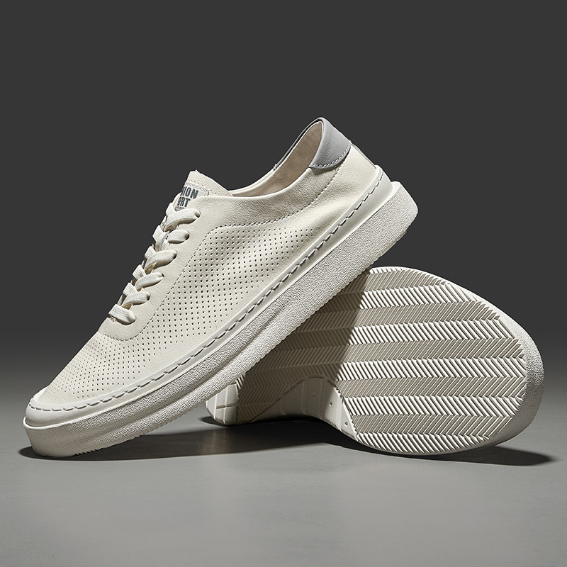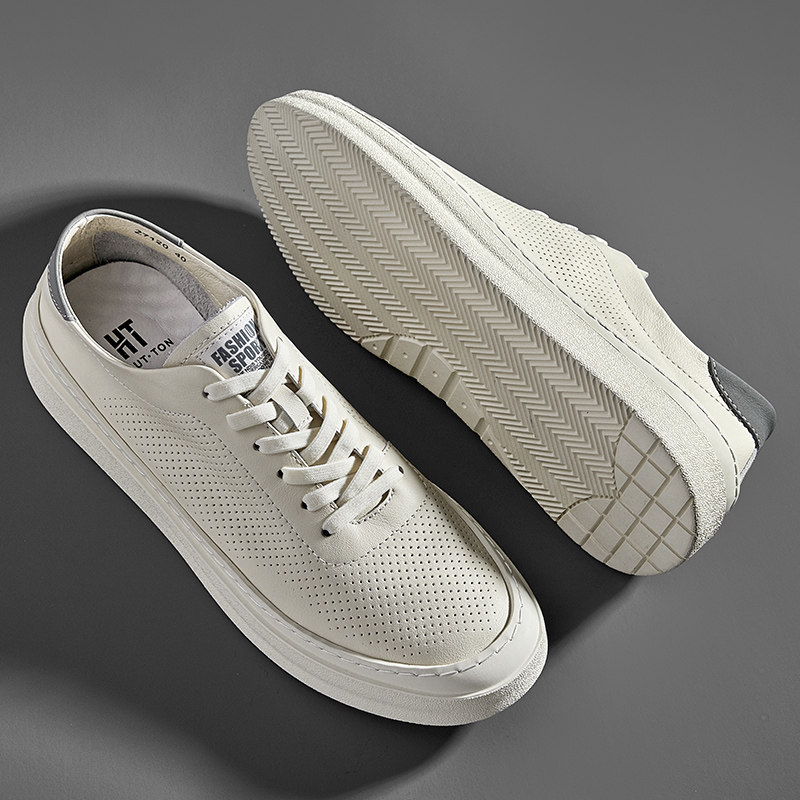 HauttonJeans men's shoes Fall breathable small white shoes genuine leather casual board shoes men's thin hollow leather shoes-Taobao