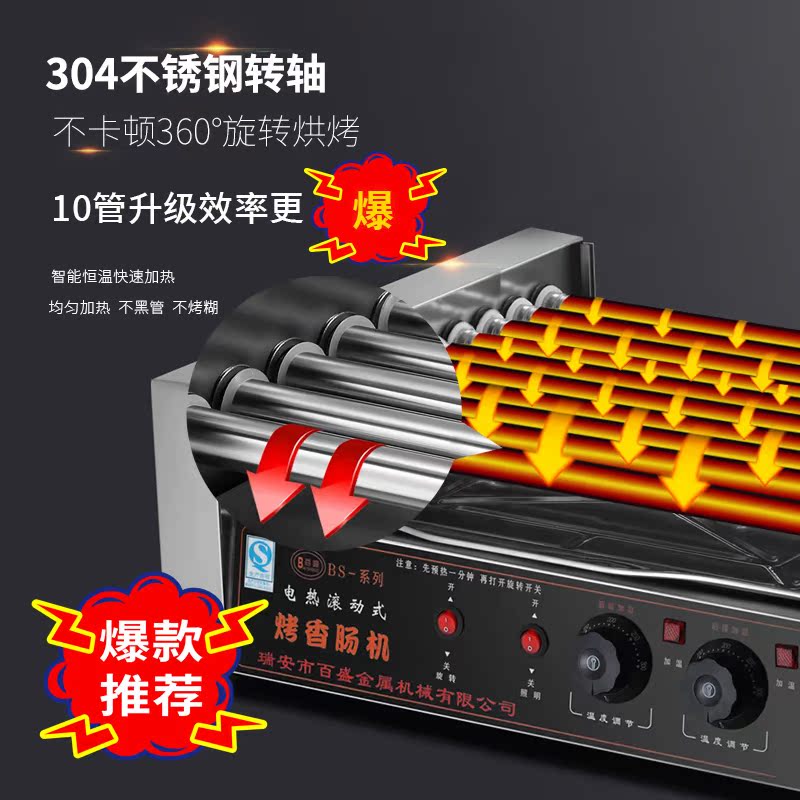 Dele Bon Grilled Sausage Machine Commercial Pendulum Spread Sausage Machine 10 Pipe T Type Intelligent Double Temperature-controlled Fully Automatic Taiwan Hot Dog Machine