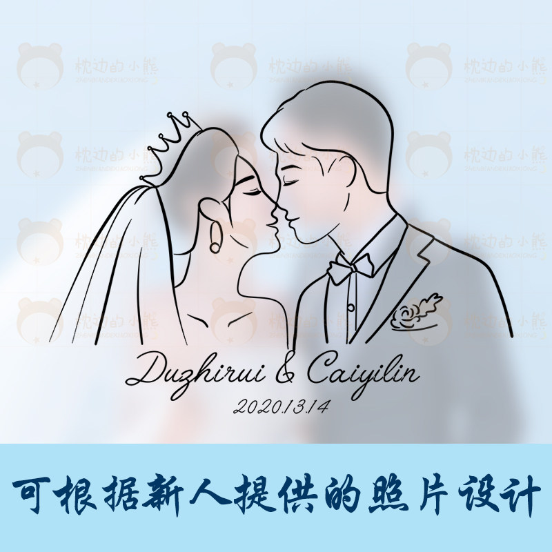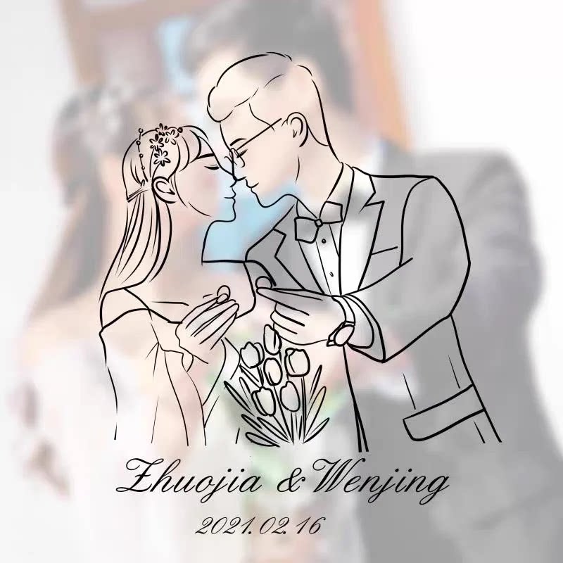Wedding logo jane pen line hand drawn avatar couple cartoon cartoon image design Q version custom real person photo