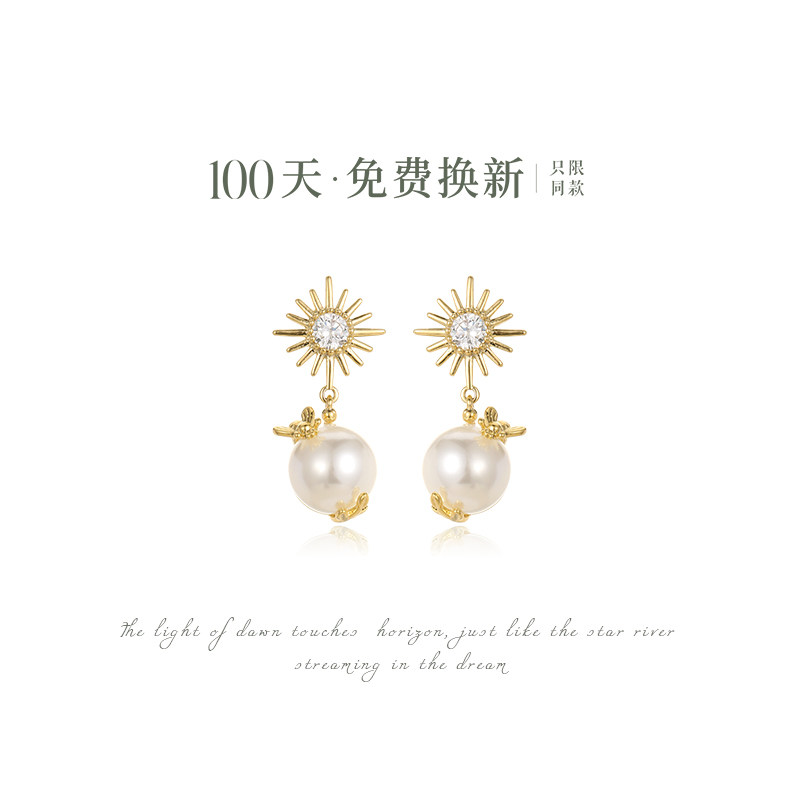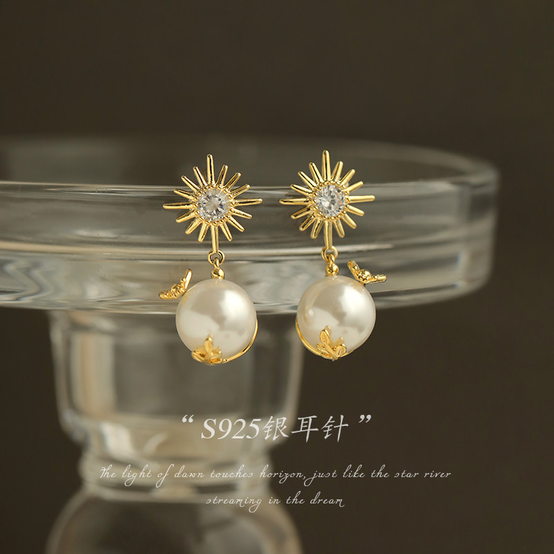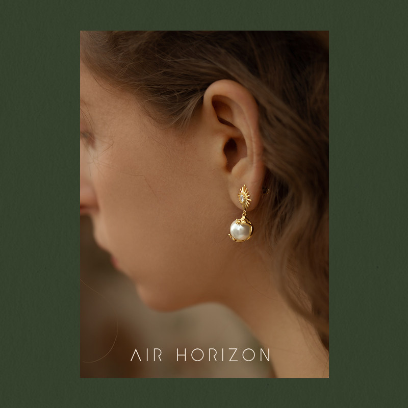 AIR-HORIZON gold retro earrings new female bee bead earrings high-end French silver needle earrings