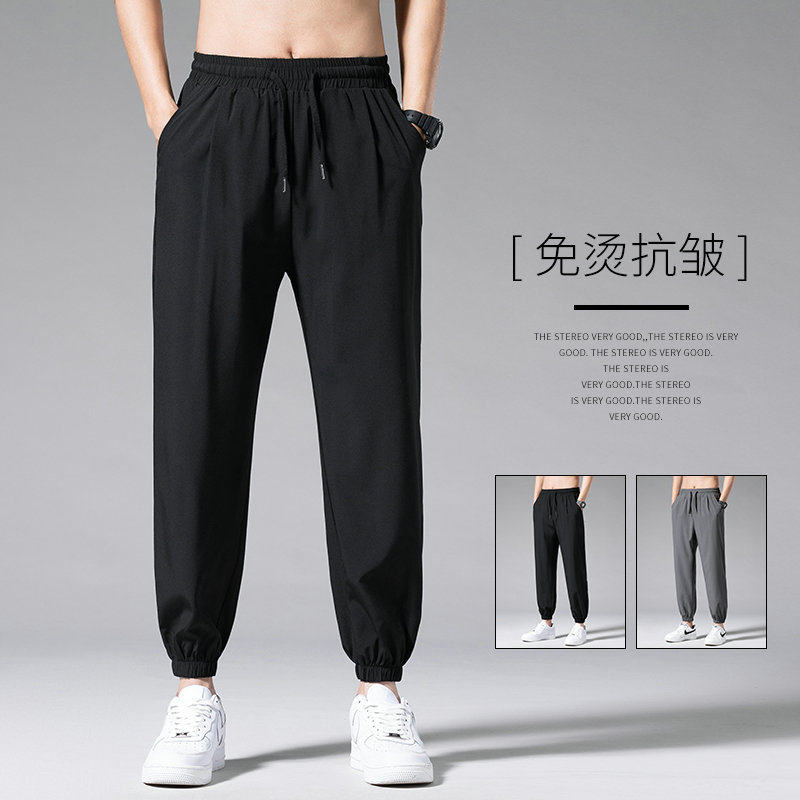 Antarctic pants Men's summer thin ice silk trend loose drape nine-point guard pants drawstring casual pants
