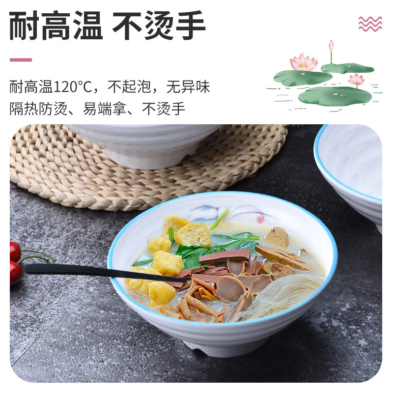 Top Lattice Imitation Porcelain Melamine Bowl with Noodles Bowl Eat Noodles Large Bowl of Snail Powder Noodle Sour Spicy Powder Bowl Linen Hot Bowl Commercial Soup Bowl