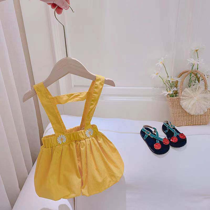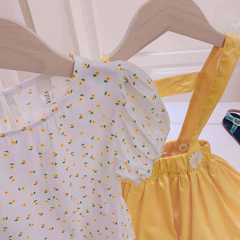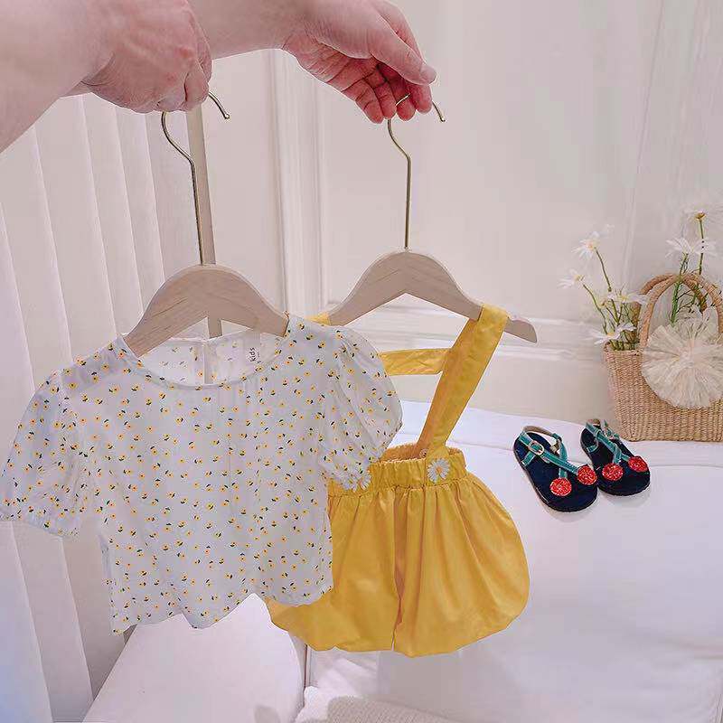 Girl's summer clothing suit 2021 new trendy foreign female baby Broken Flowers Short Sleeves Cuddling Bag Pants Two Sets Of Korean Prints