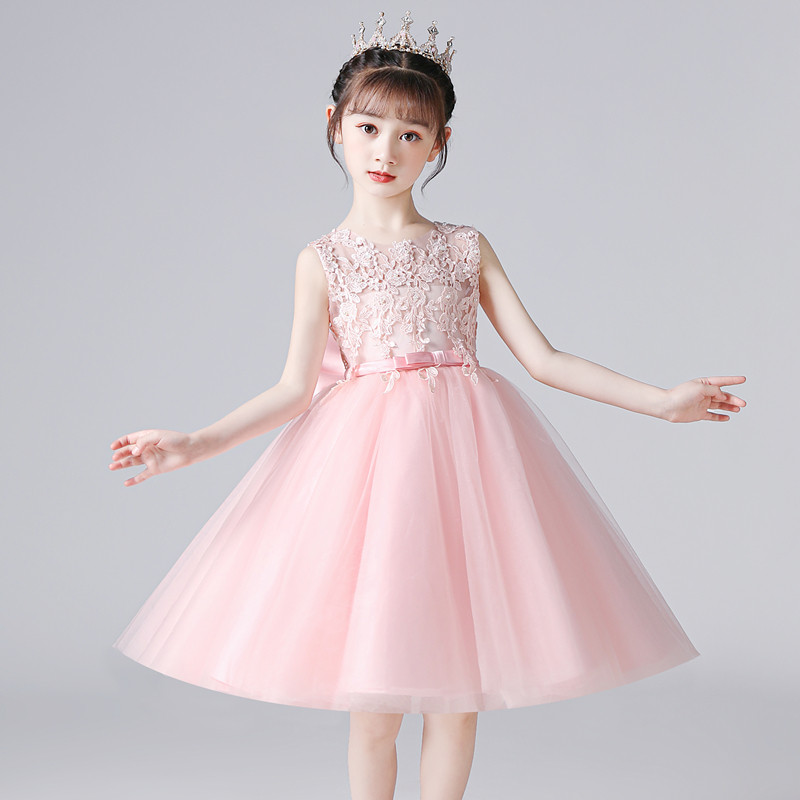 Children's Gown Princess Dress Foreign Pie Summer Dress Host Walking Show Pompon Dress Wedding Piano Performance Girl Ocean Dress