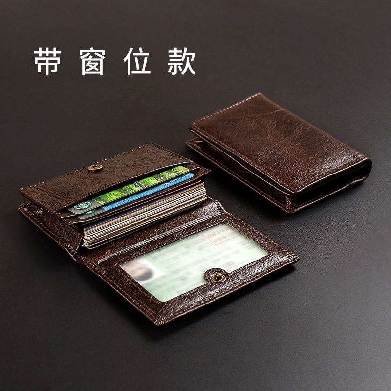 Short paragraph genuine leather card bag rfid burglar-proof brush multi-position mad mpika bag male name sheet clamping retro calf leather card holder