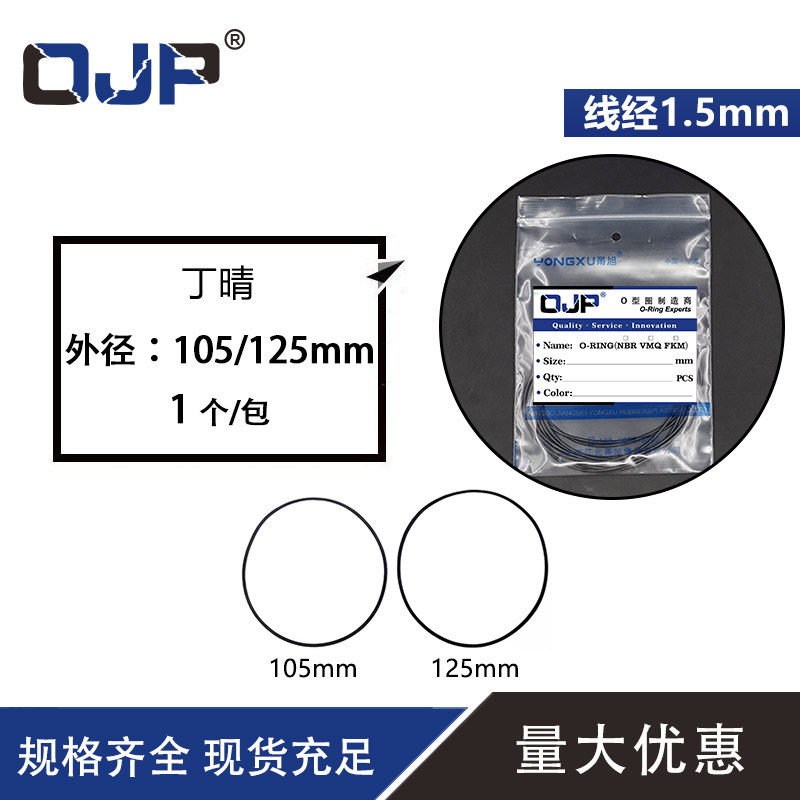 Dingqing O-ring sealing ring outer diameter 105 125*1 5mm wire diameter oil-resistant wear-resistant black waterproof rubber ring