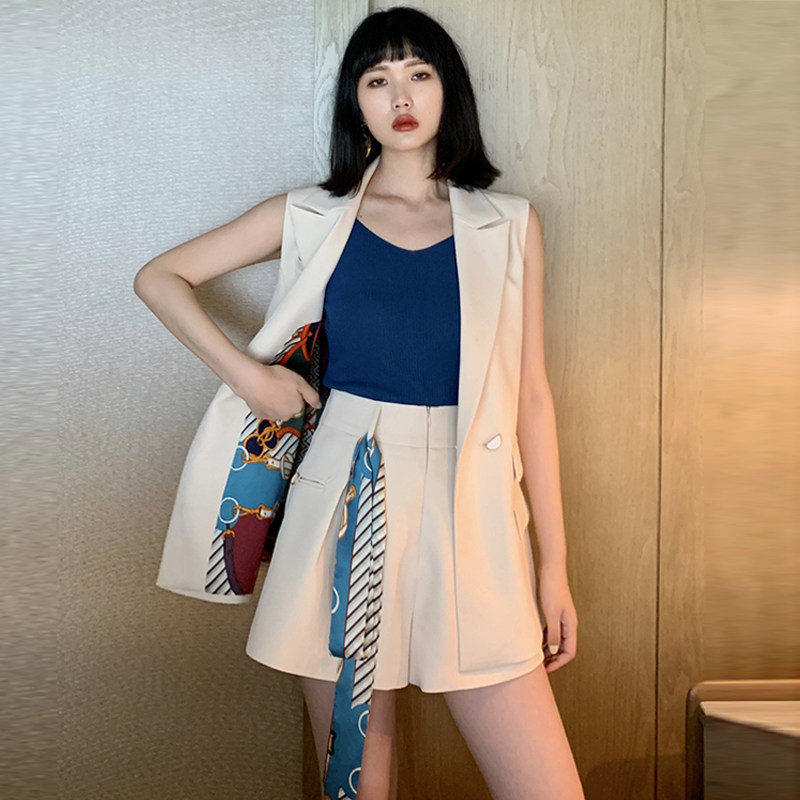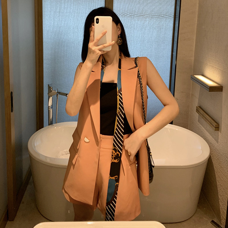 Hepburn style suit light and mature temperament goddess Fan French retro casual fashion suit vest shorts two-piece summer