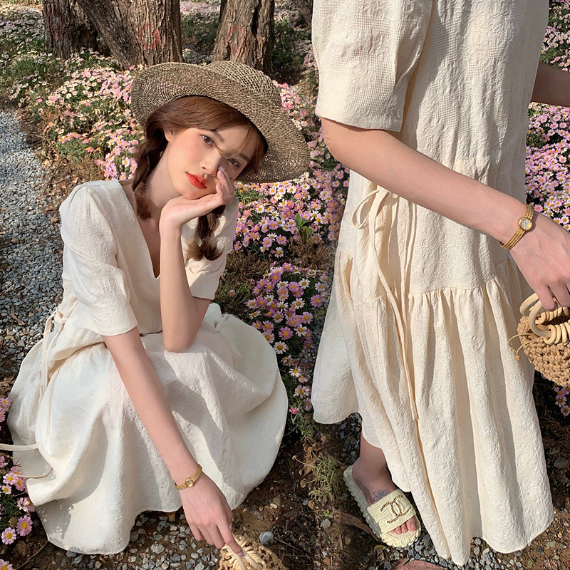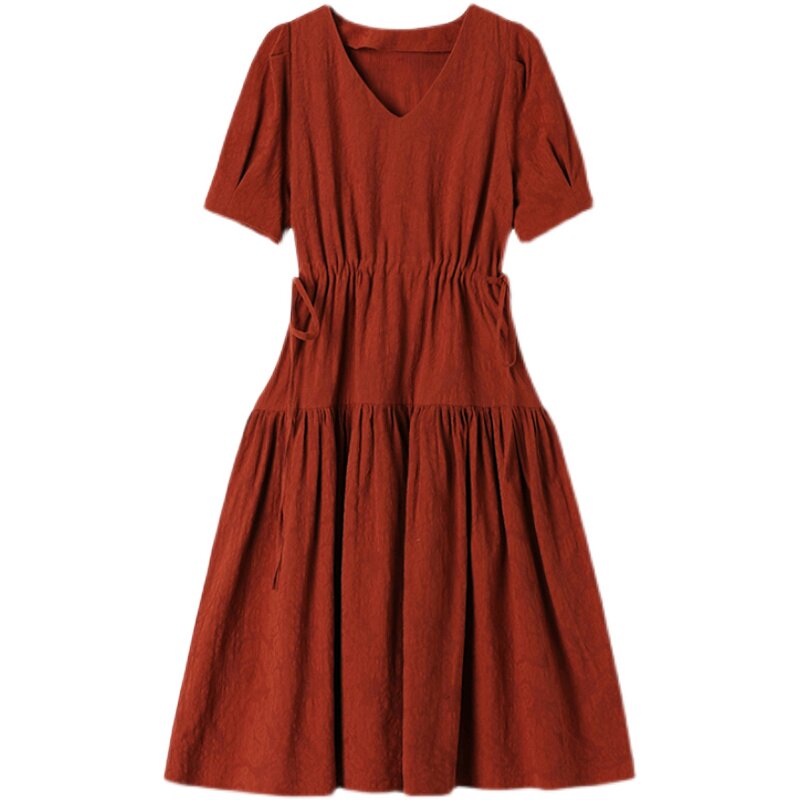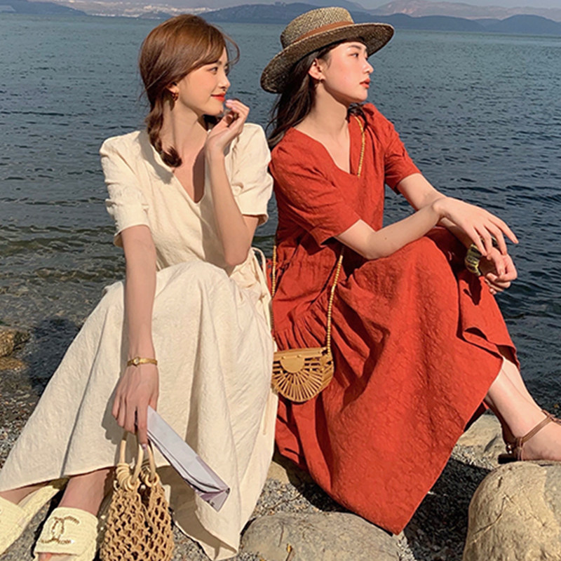 Large size women's clothing 2021 summer new fat mm temperament waist long dress French bubble sleeve thin dress
