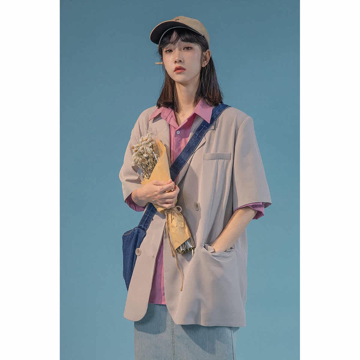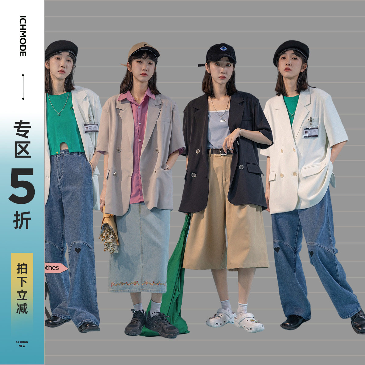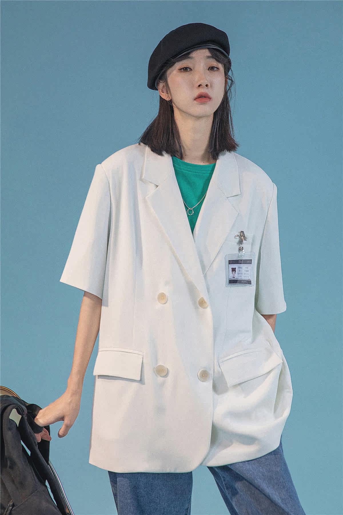 ICH MODE Short Sleeve Suit Jacket Woman Summer Thin Loose Day Ensemble White Casual West Suit Blouse