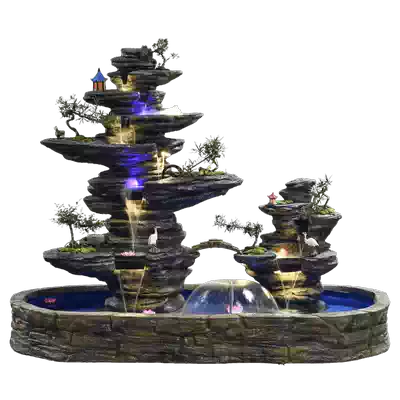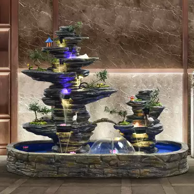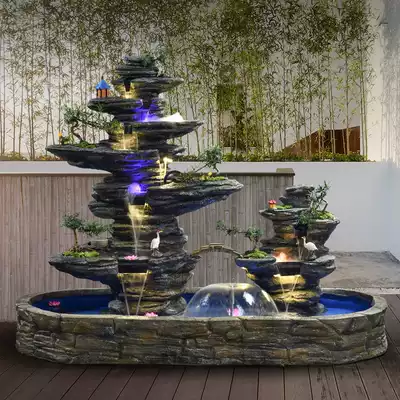 Large rockery, water fountain, water view, living room, indoor feng shui wheel, floor-to-ceiling Garden, outdoor fish pond landscape