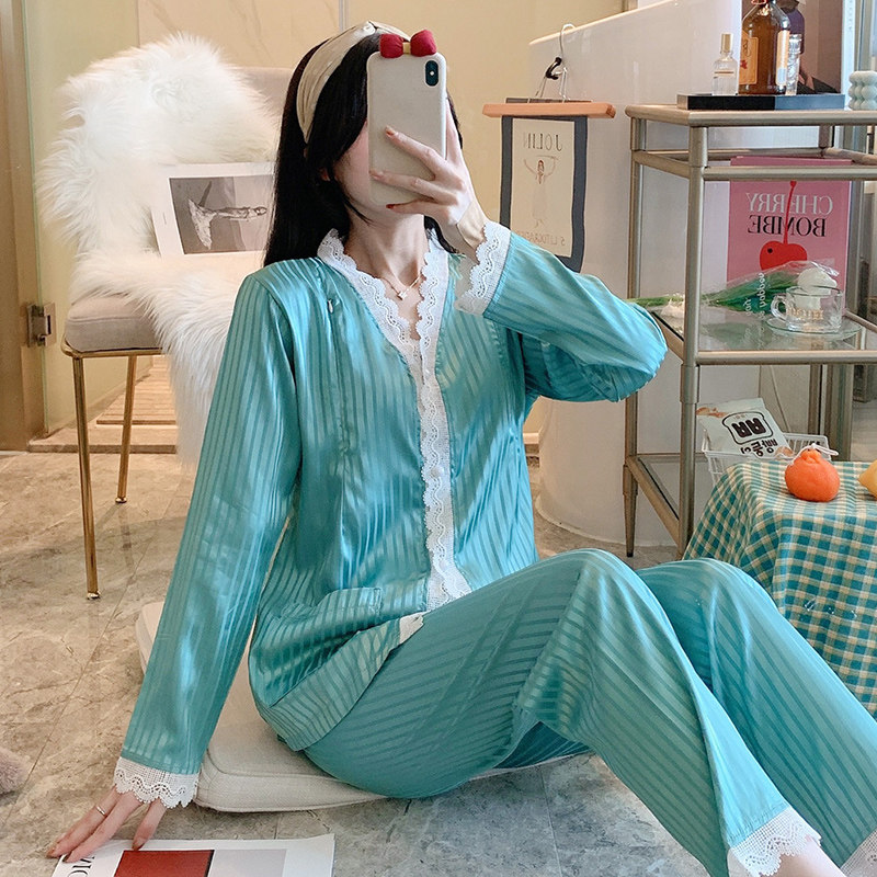 Lunar Subsuit Summer Ice Silk Thin Lactation Lactation Nursing Home postpartum discharge pyjamas July 8 Spring pregnant women's stay-at-home clothing