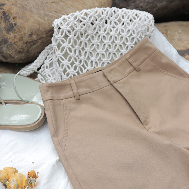 Khaki suit shorts women's summer thin section casual small summer European goods five points high waist trousers A word summer