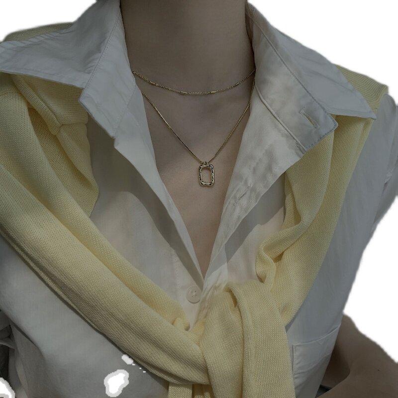 Double layer square necklace woman light lavish crowd 2022 New wave pure silver laminated dines lukewarm wind lock bone chain
