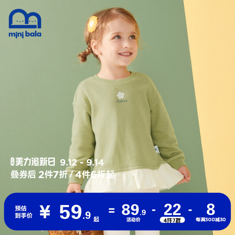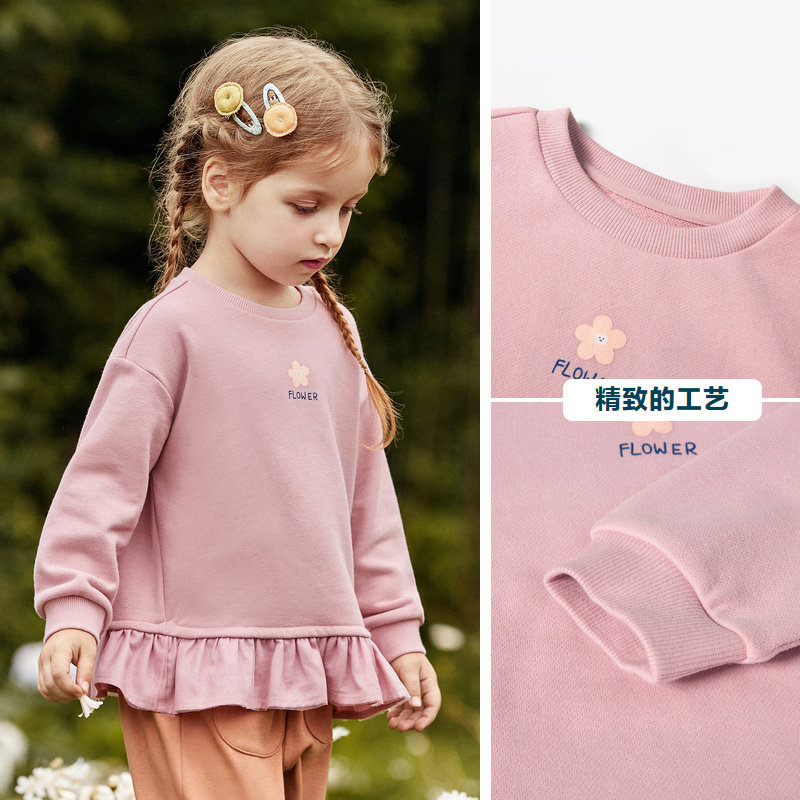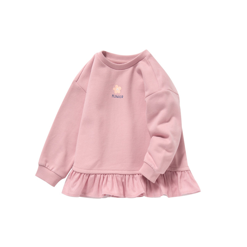 Mini Barabara girls thick T-shirt spring new long-sleeved top sweet lace hem cotton Western style long version