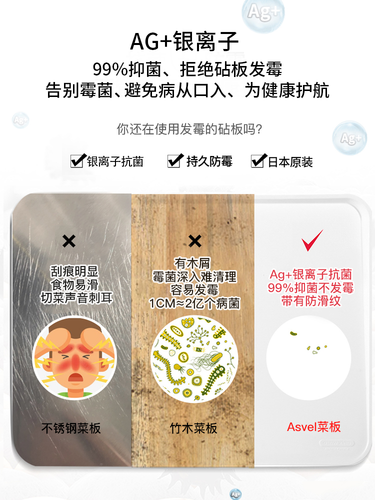ASVEL deck antibacterial anti-mildew household chopping board cutting fruit board food grade plastic side-food plastic double-sided paste