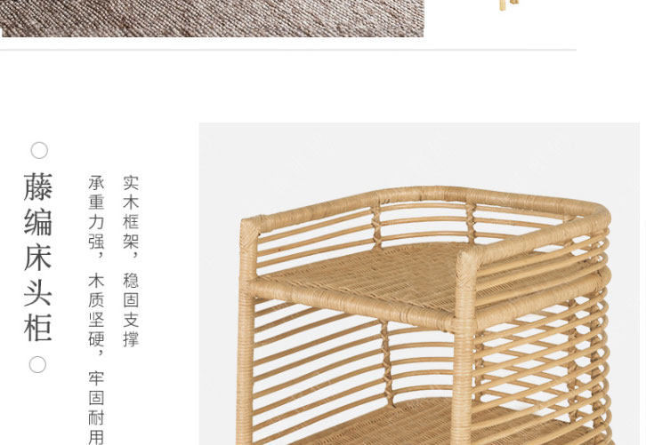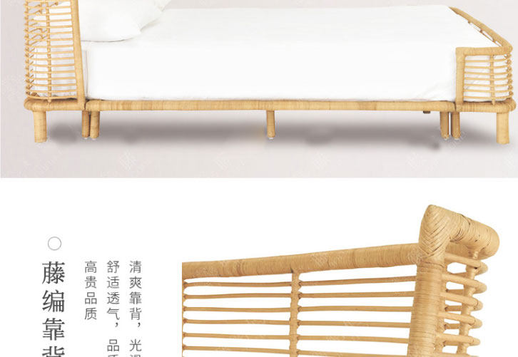 Nordic Japanese rattan single double rattan bed simple modern net red hotel apartment bedroom rattan rattan rattan wood bed