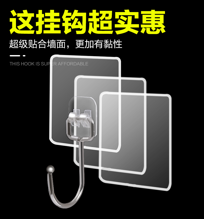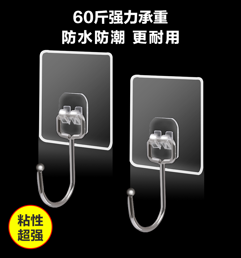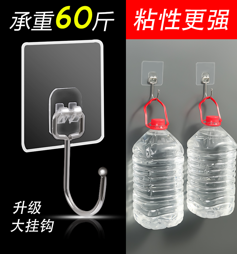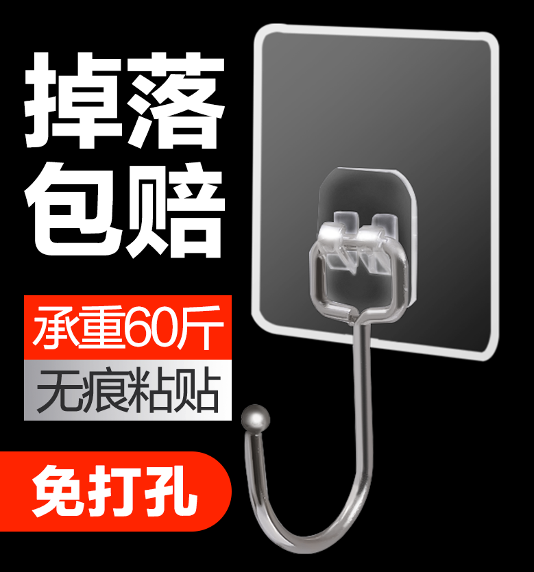 Large hook Strong load-bearing adhesive free hole kitchen wall door-to-door transparent non-trace adhesive hook hanging clothes