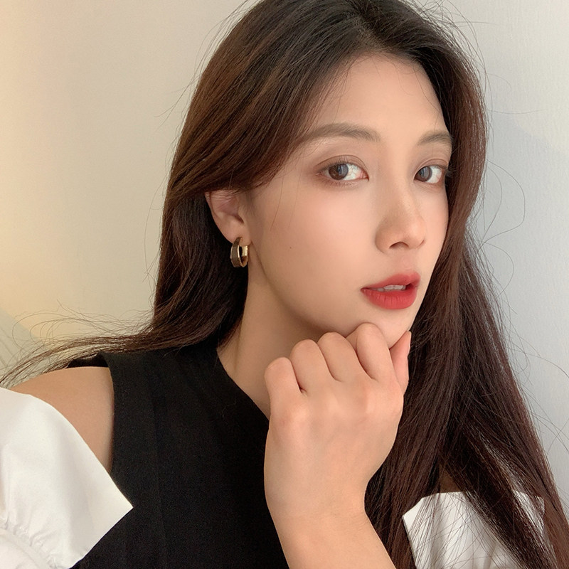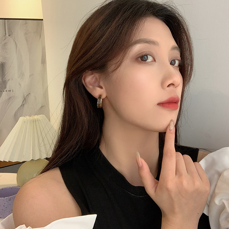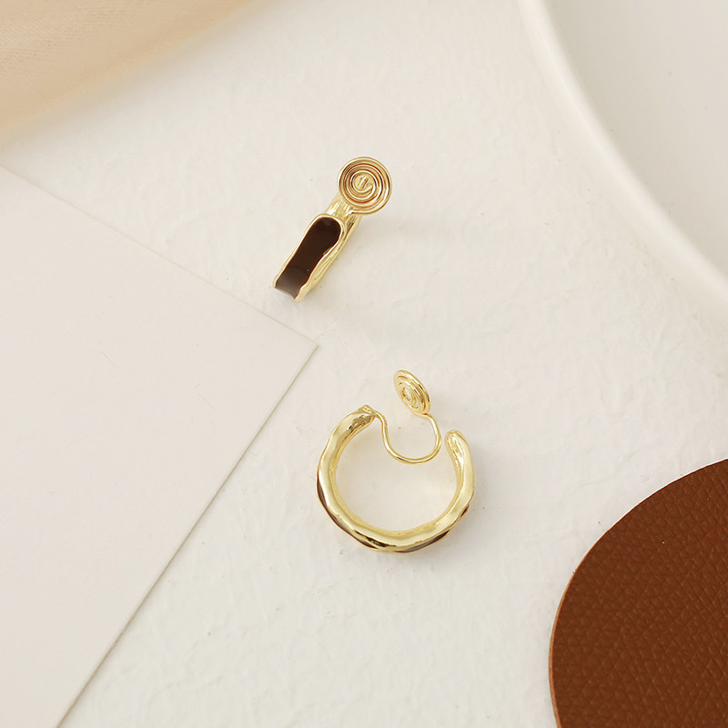 Korean coffee-colored earrings earrings temperament atmosphere high-end net red round face thin mosquito coil plate without ear hole ear clip