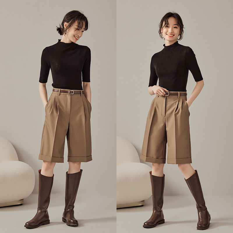 GDZY Bermuda suit shorts women's summer casual wide-leg five-point pants women's summer thin straight five-point pants women's summer