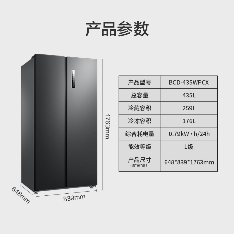 (Zhen Jing) Meiling 435L dual switch to open the door household air-cooled frost-free first-level variable frequency large-capacity ultra-thin refrigerator