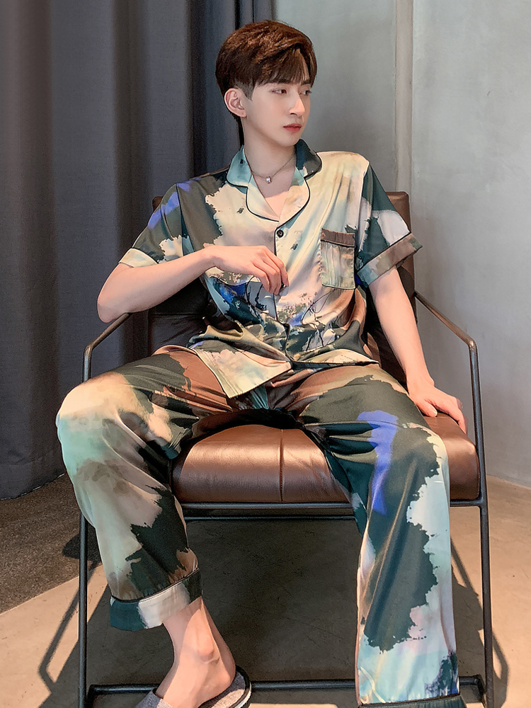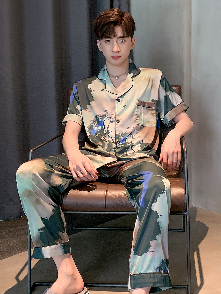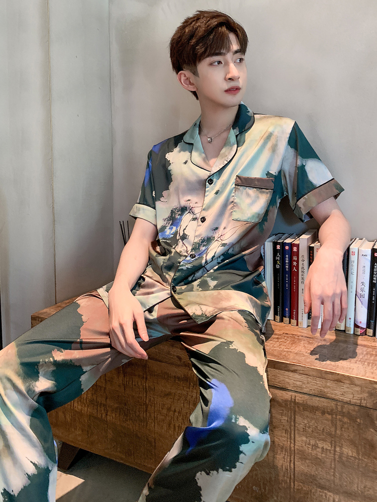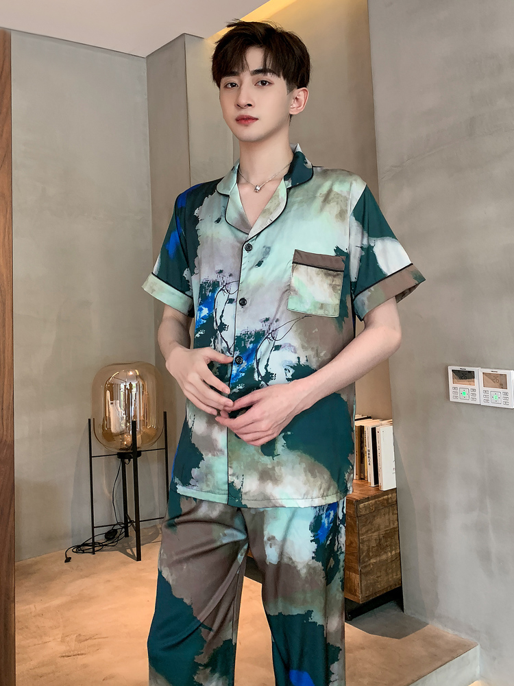 Tie-dye ink painting Dark male Tie-dye ink painting Light male banana leaf male peacock blue long-sleeved silk cartoon beauty Black male character plaid black male crane Black male crane Blue male full print