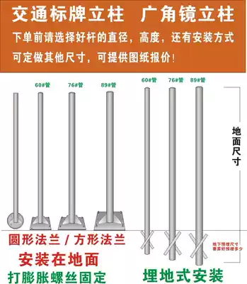 Road traffic sign pole 2 inch wide-angle mirror installation column sign galvanized column steel pipe embedded parts