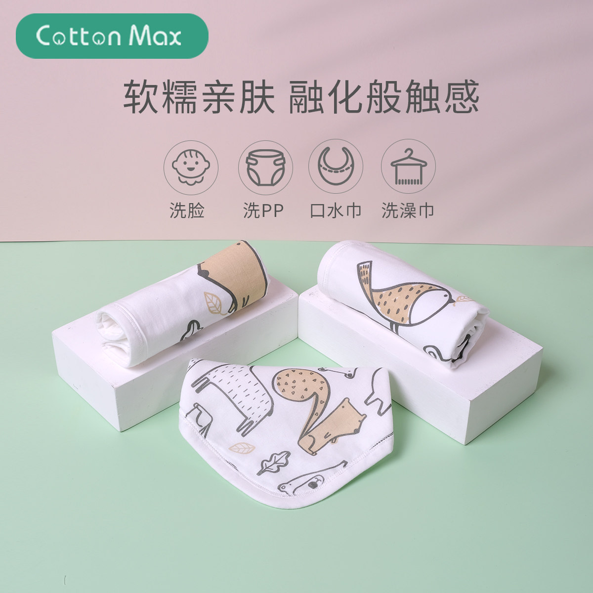 cottonmax three baby towels Xinjiang cotton small square towel saliva towel baby cotton gauze wash face