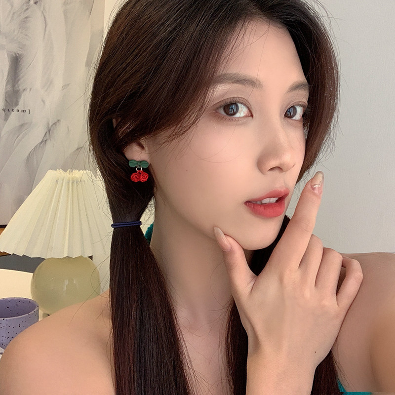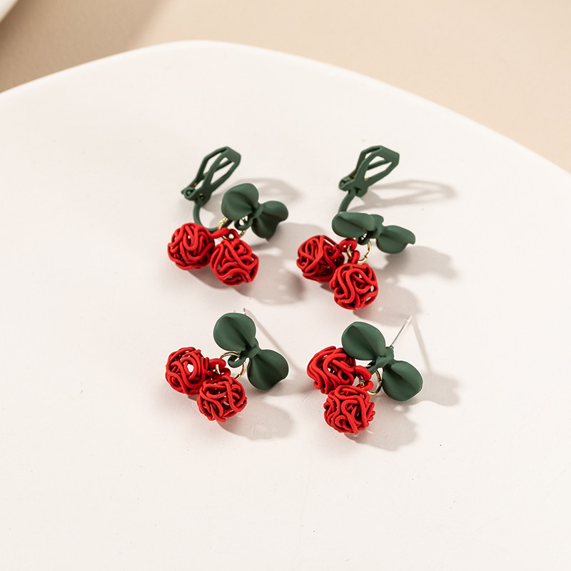 Butterfly Knot Red Cherry Ear Pin Cute Sweet And Merry Color Earrings Korea Fashion Temperament Net Red Without Ear Clip