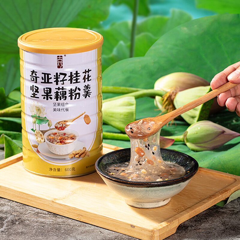 Chia seed osmanthus nut lotus root powder soup (canned large capacity 600g) Fruit nut lotus root powder soup(canned large capacity 600g) Two cans of lotus root powder combination(fruit nut lotus root powder soup 600g