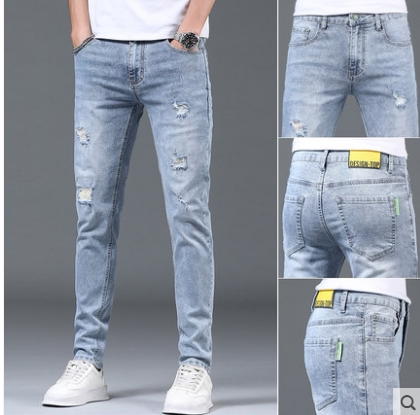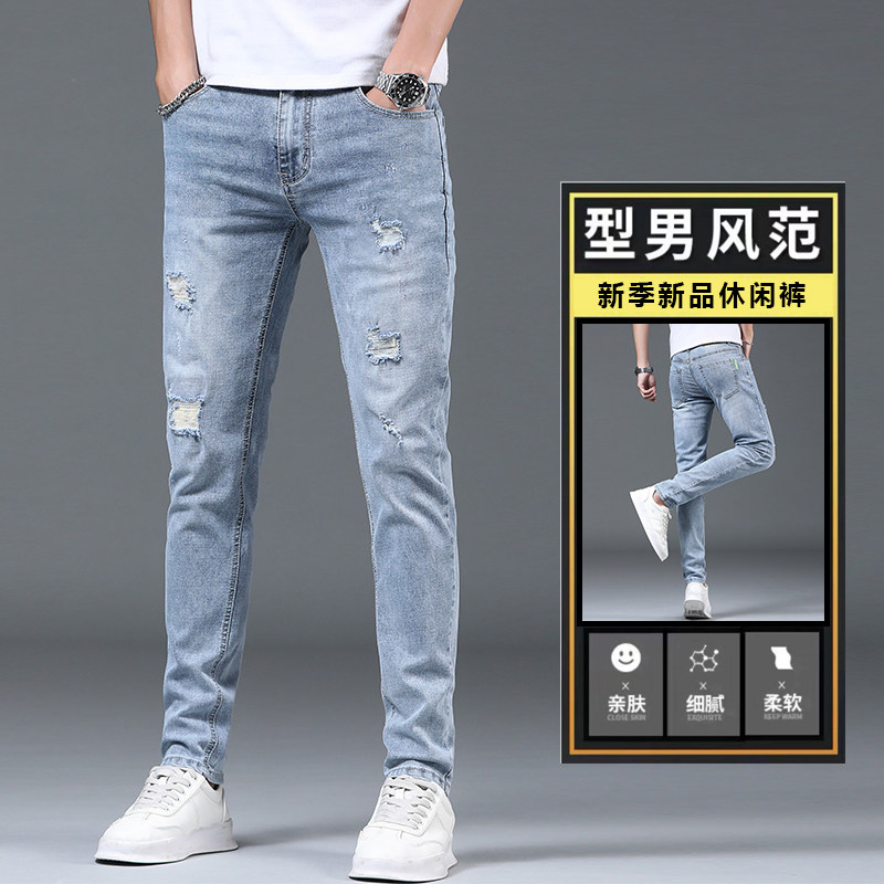 Tide card Broken Cave Jeans Man 2022 Summer New elastic body straight cylinder loose slim fit Casual Narrow Foot Pants