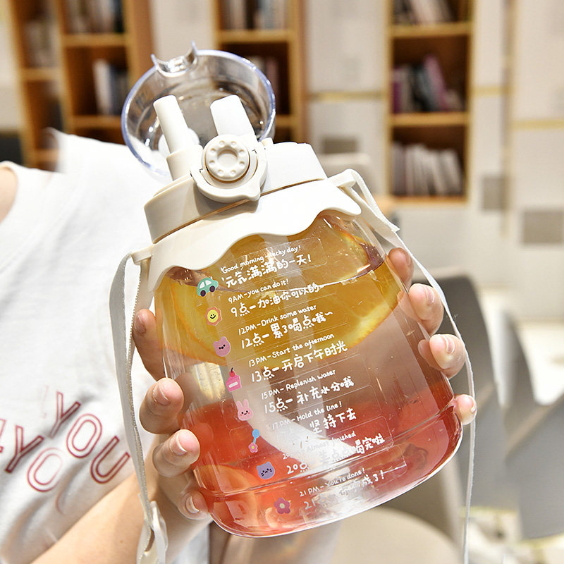Water glass girls large capacity with straw portable large belly high face value net red summer plastic cups sports kettle bottle-Taobao