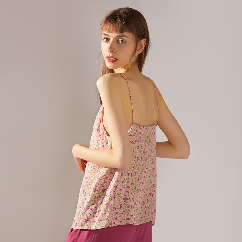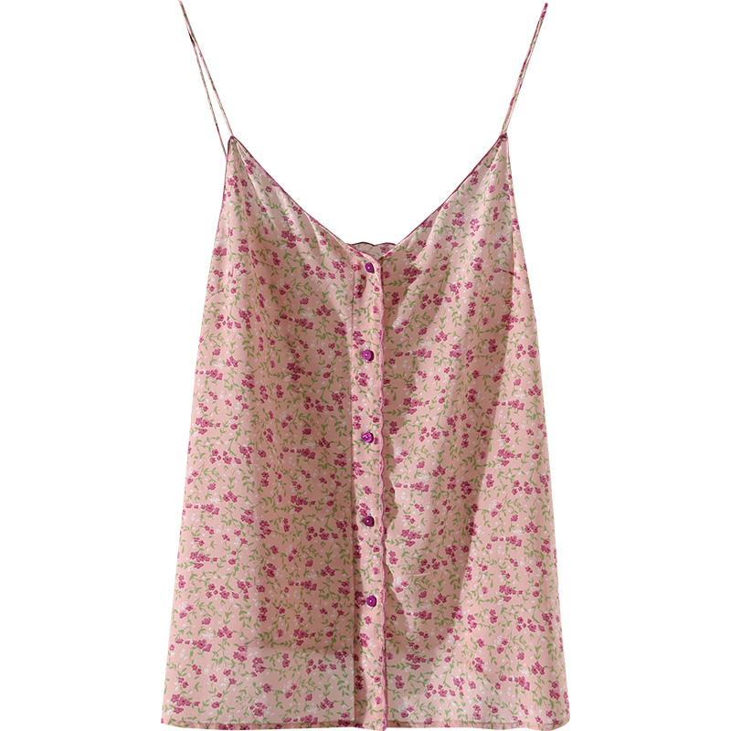 XEXZ suspenders female 2022 new summer silk inner vest with broken flowers home service mulberry silk bottoming top