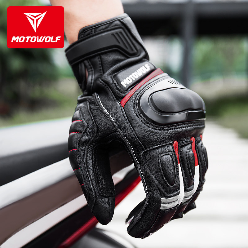 Four Seasons Locomotive Riding Anti-Fall Genuine Leather Gloves All Season Male Cross-country Racing Locomotive Rider TOUCH SCREEN BREATHABLE FULL FINGER