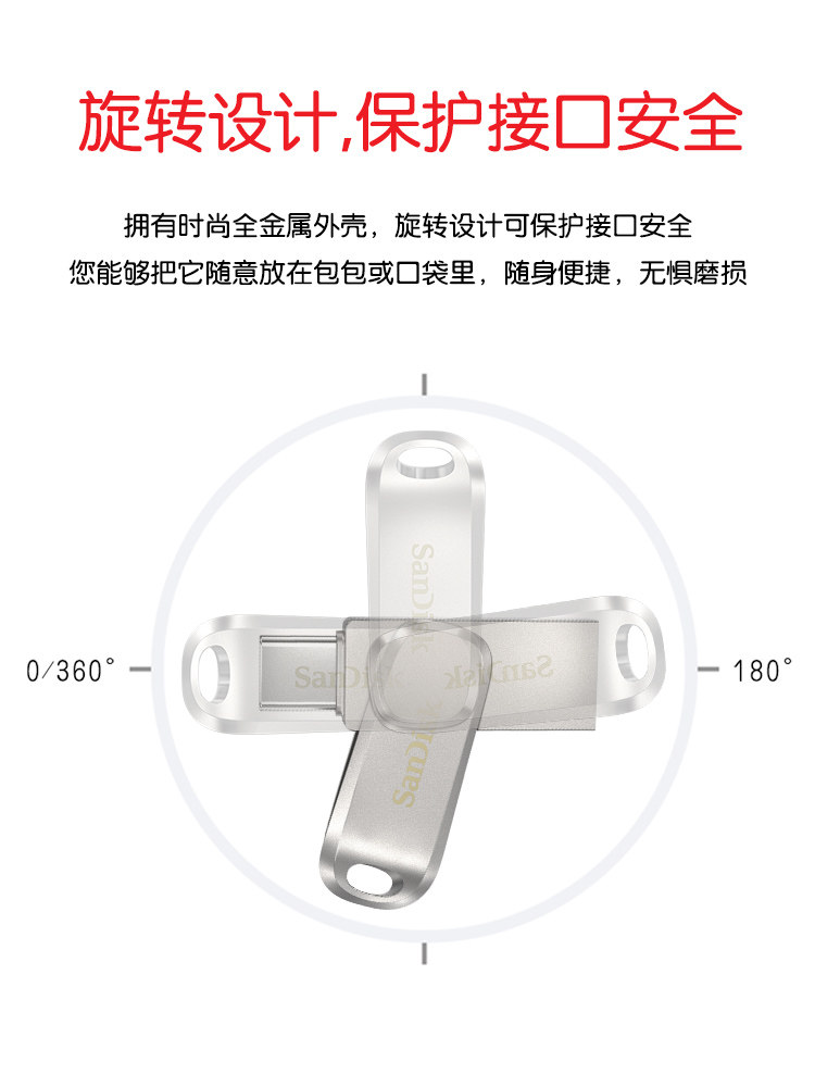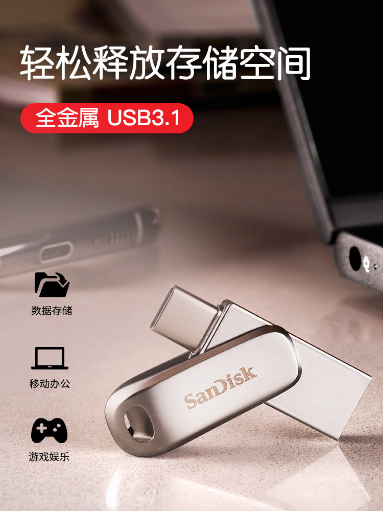 SanDisk Type-c mobile phone U disk 32G high-speed USB3 1 metal U disk dual interface external U disk car U disk