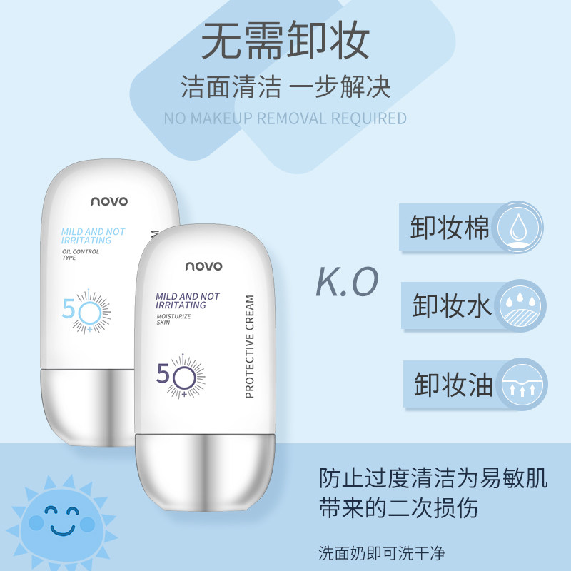 Novo whitening sunscreen milk female face anti-UV male face refreshing without greasy isolation and concealing three in one